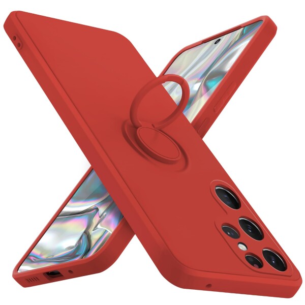 CQTMYWL 対応 Galaxy S22 ultra 用の ケース リング 耐衝撃 シリコン カバー tpu 指紋防止 リング付き車載ホルダー対応 柔軟 軽量 落下防止 スタンド機能 滑り止め 着脱簡単 一体型 カバー 赤Q08005