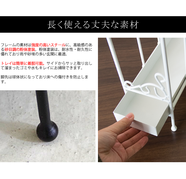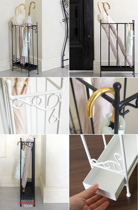 傘立て 完成品 (約)10cm幅 アンティーク調 大人かわいい おしゃれ アンブレラスタンド 傘 収納 隙間収納 スリム コンパクト 傘入れ 角型 四角 スチール 受け皿付き 折りたたみ傘 幅10.5cm 奥行30.5cm 高さ50cm 玄関収納 一人暮らし ワンルーム 女子部屋 ブラック ホワイト インテリア 収納家具 可愛い 傘 立て カサ立て かさ立て 傘置き アンブレラハンガー デザイン傘立て 狭い 玄関 インテリア 角柱 子供用傘 省スペース ワンルーム スパニッシュテイスト ラインアート クラシック レトロ かわいい キュート 姫系 フェミニン 黒 白 高級感 魅せる収納