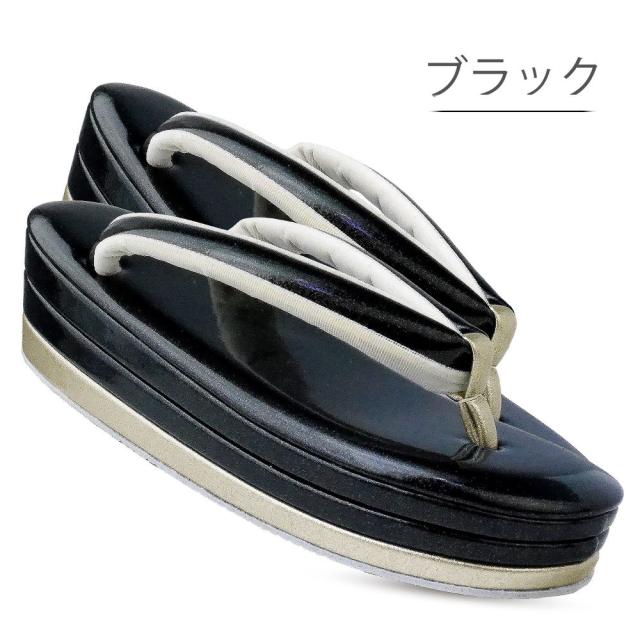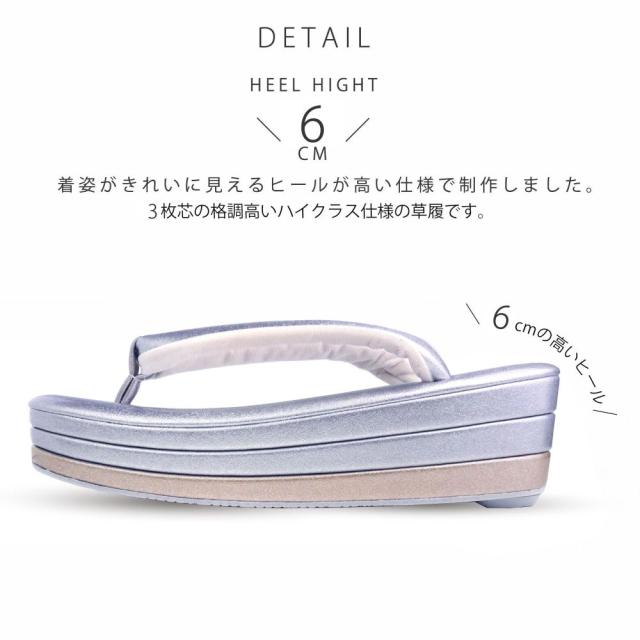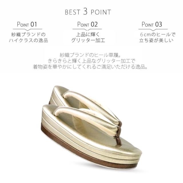 上品なきらめきラメ素材を使用した厚底ヒール草履。