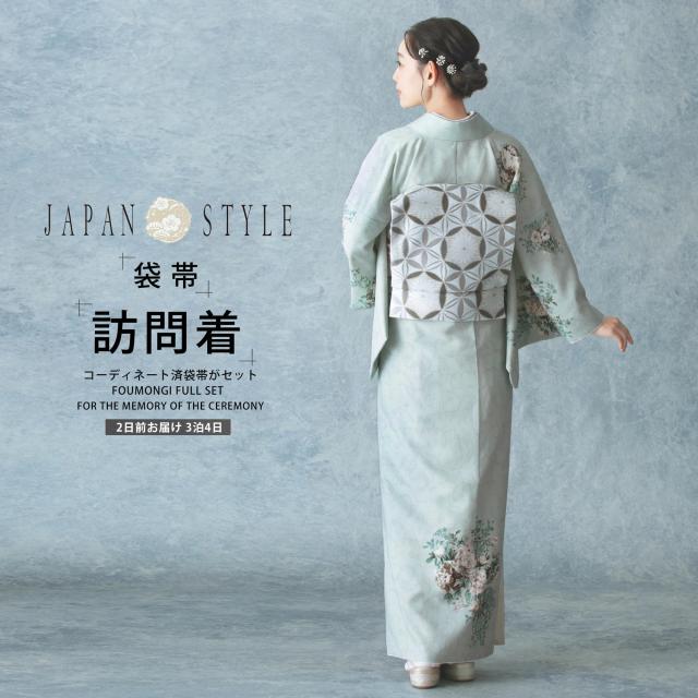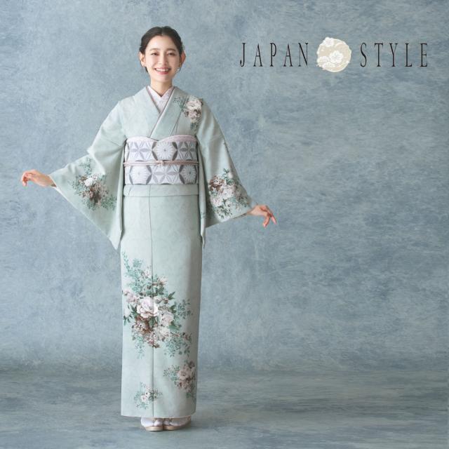 JAPAN STYLE 訪問着 レンタル 着物レンタル 貸衣装 フルセット 【画像の帯がセット】 入学式 卒業式 七五三 結婚式 お宮参り 結納 お茶会 パーティー 母親 ママ 人気 訪問着レンタル 付下げ フルセットレンタル モダン 水色 青 バラ 薔薇 くすみカラー No.0292