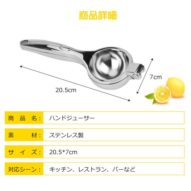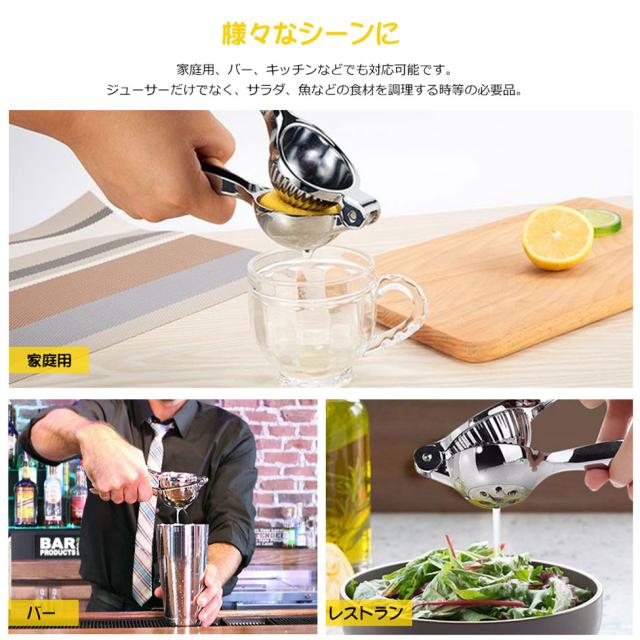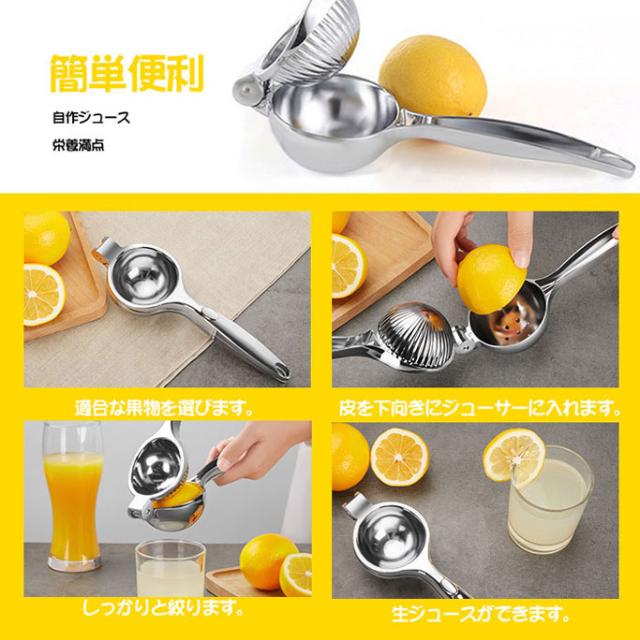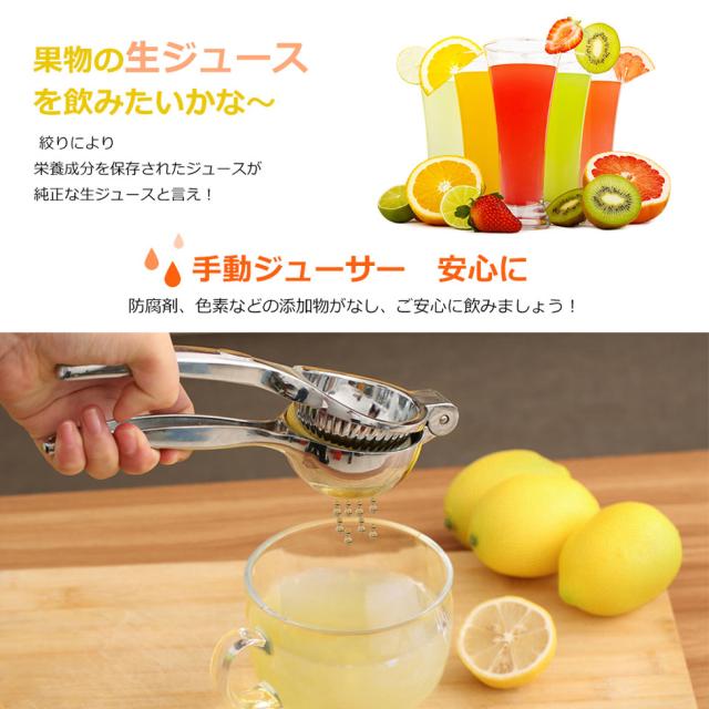 レモンだけでなく、ブドウ、ミカン、トマトなども便利に絞れます。ジューサーがあると手軽にたっぷり摂れます。家庭用として以外、バー、キッチンなどでも対応可能なレモンジューサーはサラダ、魚などの食材を調理する時等の必要品となります。