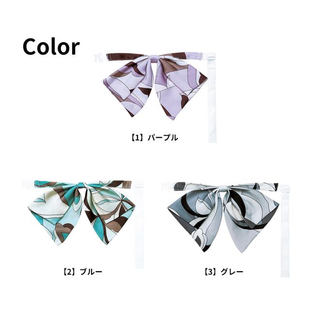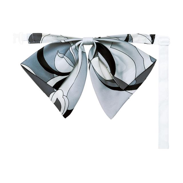 すでにリボン型になっているので、いつでもきれいなリボンのカタチです。派手めの柄なので無地のブラウスなどに映えるリボンです。ワンタッチでできるボタン留めなのでカンタンに付け外し可能です。ベルト部分はブラウスの襟下に隠れて見えませんし、白いので、白いブラウスと合わせても目立ちません。襟付きタイプであれば、どんなタイプのブラウスにも合うので、一つあるととても便利。おしゃれを楽しみたい方、個性を出したい方におすすめのリボンです。