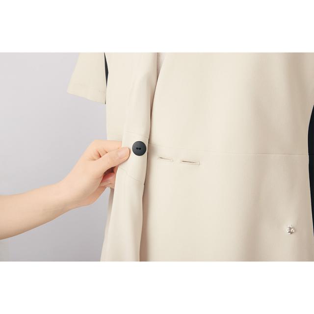 着物のように羽織って着脱できる多機能ワンピース胸元、スカート部分にスナップボタンを付けているので、チラ見えもしっかりガードします。