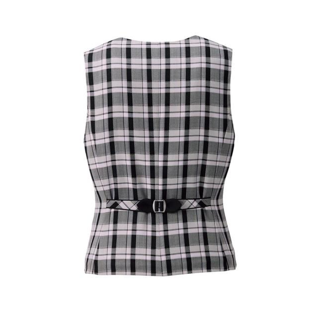 やさしいピンクに黒を効かせた大人チェック柄のベスト。