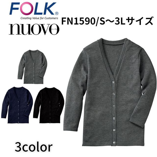 FOLK nuovo フォーク ヌーヴォ S〜3L カーディガン(ロング丈) 事務服 看護師 医療事務 美容外科 医療スタッフ ビジネスカジュアル fn1590 宅配のみ