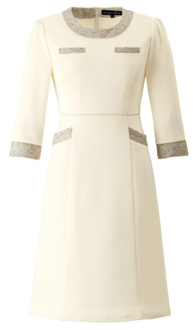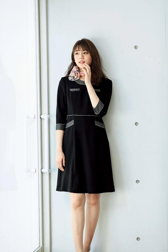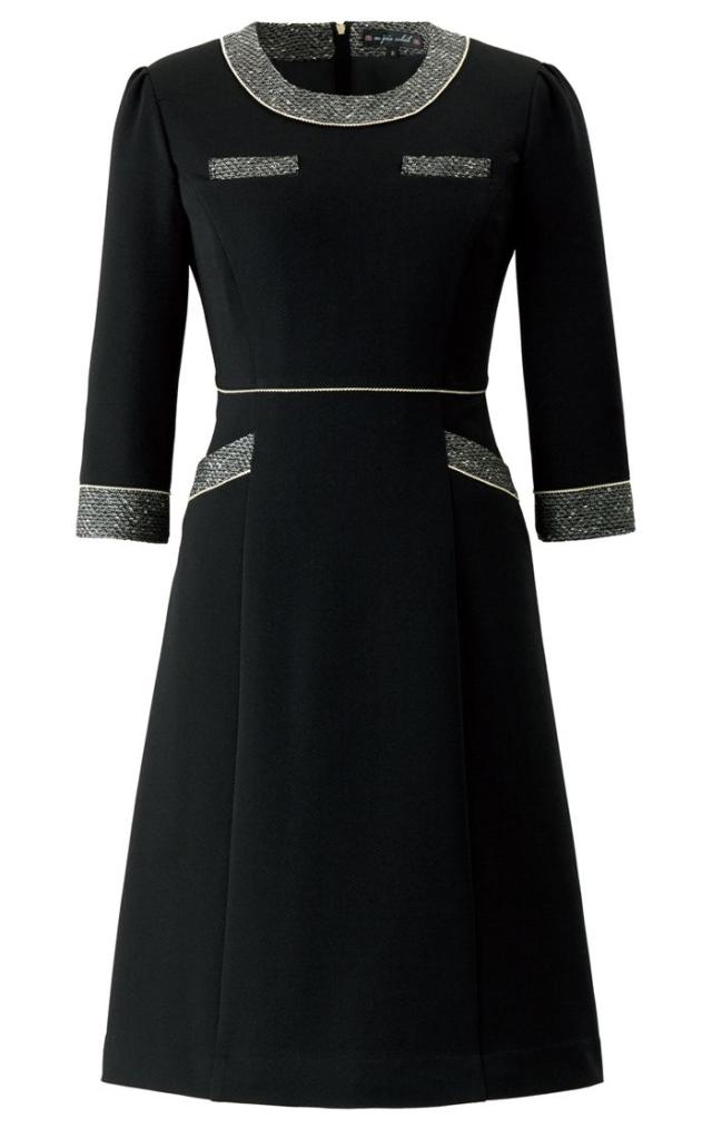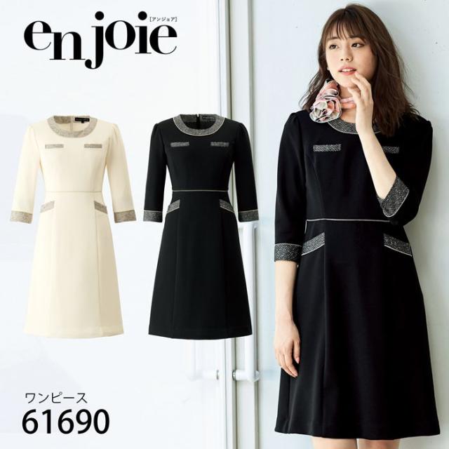 en joie アンジョア 七分袖 ワンピース 5号〜15号 黒 ホワイト オフィス 制服 事務服 受付 コンパニオン かわいい クリニック 病院 61690 宅配のみ