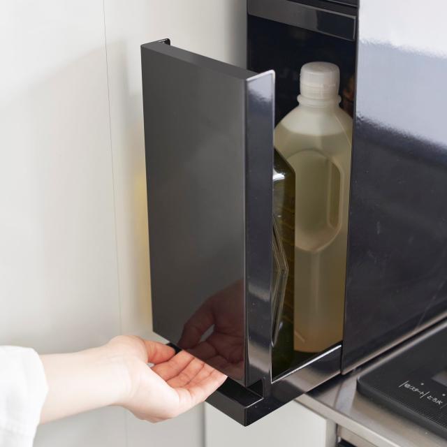 ・引き出し式で、油のボトル類も収納できる大容量の調味料ラック。