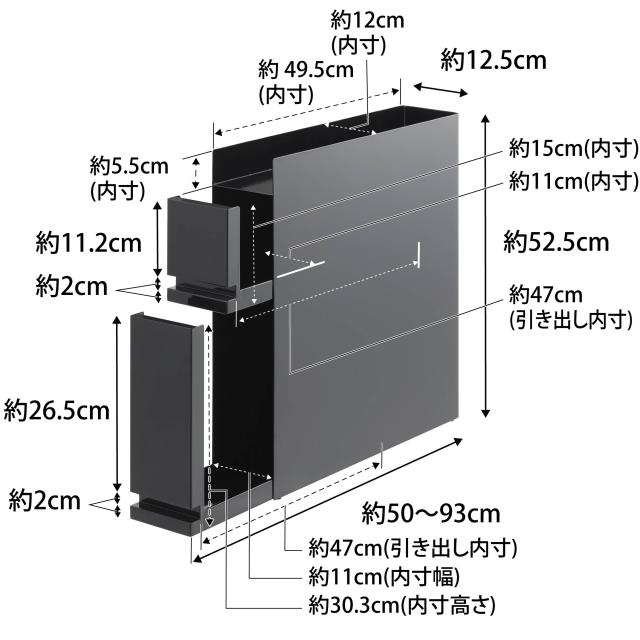 ●商品サイズ:約W12.5×D50〜93×H52.5cm