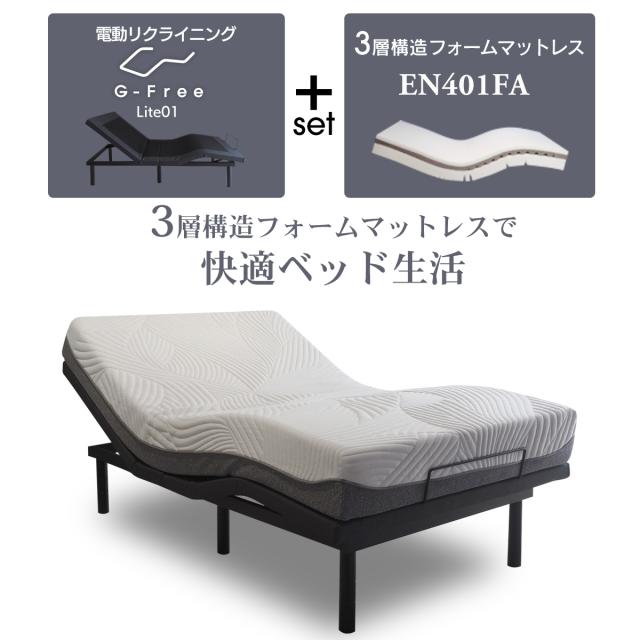 【マットレス付でお得】電動ベッド G-Free Lite マットレス付き セミダブル EN401FA アジャスタブルベッド