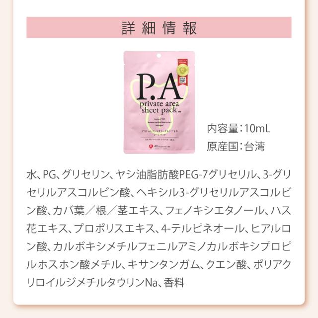 P.Aプライベートエリア シートパック VIO専用 PAシート プラス デリケートゾーンシート VIOケア デリケートゾーン ケア 脱毛 美白 シミ クスミ コスメ pasheet-1