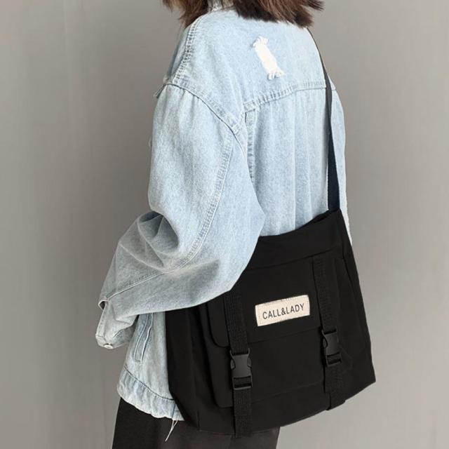 レトロ メッセンジャーバッグ カジュアルバッグ 通勤通学カバン 斜めがけ ナイロン鞄 肩掛けかばん 大容量ロゴ入り鞄韓国