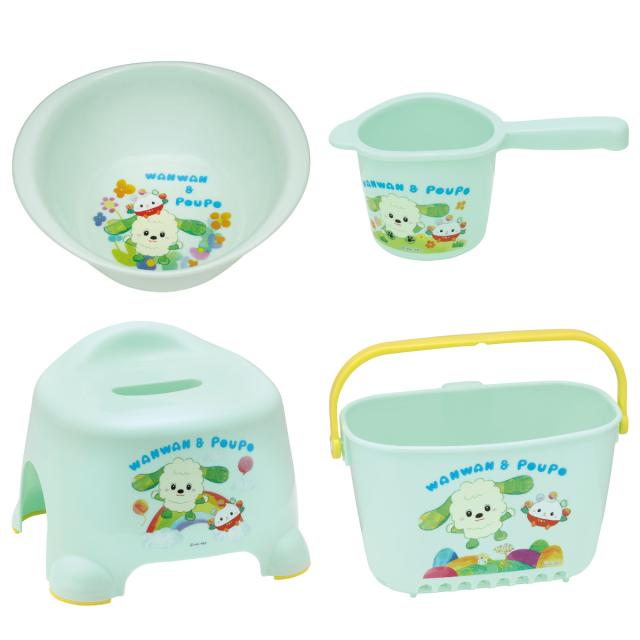 洗面器、片手おけ、風呂イス、おもちゃ入れの同シリーズで揃えると統一感が出て毎日のお風呂が楽しくなります。