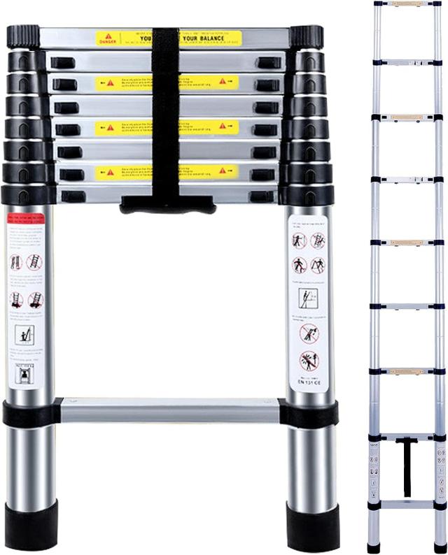 DayPlus 伸縮はしご 最長2.6 m (8.5 ft) 折り畳み伸縮梯子 多機能アルミはしご 持ち運びに便利 軽量 耐荷重150 kg 室内室外両用 自動ロッ