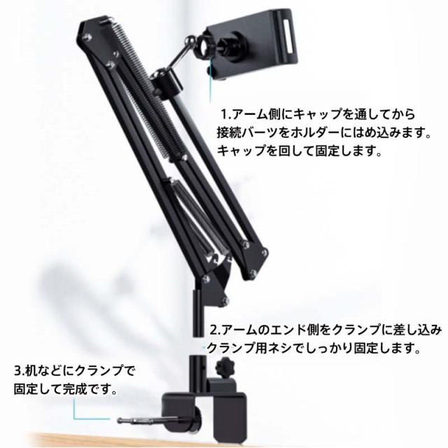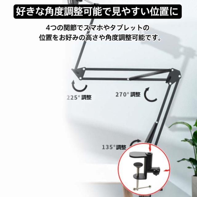 スマホスタンド 卓上 アームスタンド タブレットスタンド クリップ 寝ながら 折りたたみ スマホ ベッド ipad 固定 横 縱