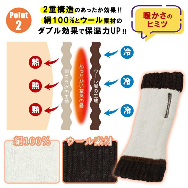 おしゃれ 暖かい カジュアル 保温 アウトドア スマホ対応 ウール シルク 指穴あり 温活 冷え
