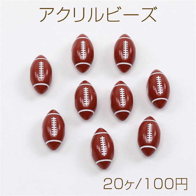 アクリルビーズ スポーツ風モチーフ ラグビーボール 通し穴あり 8×16mm(20ヶ)