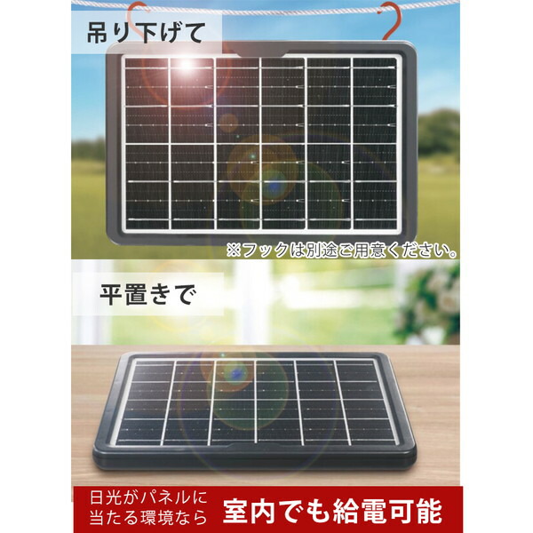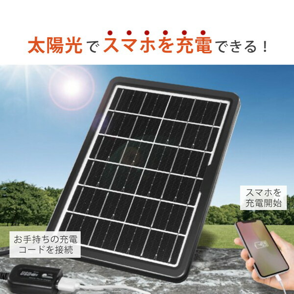 ハイパワー メガソーラーパネル 最大約6W(531772)太陽光 USB充電 防災 HAC3615A ブラック ソーラーチャージャー スマホ 充電 太陽光 アウトドア 非常時 USB接続 吊り下げ 平置き レジャー