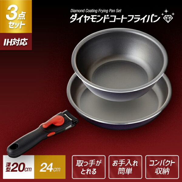 IHダイヤコートフライパン 3点セット(086302)調理器具 鍋 フライパン IH対応 セラミック塗装