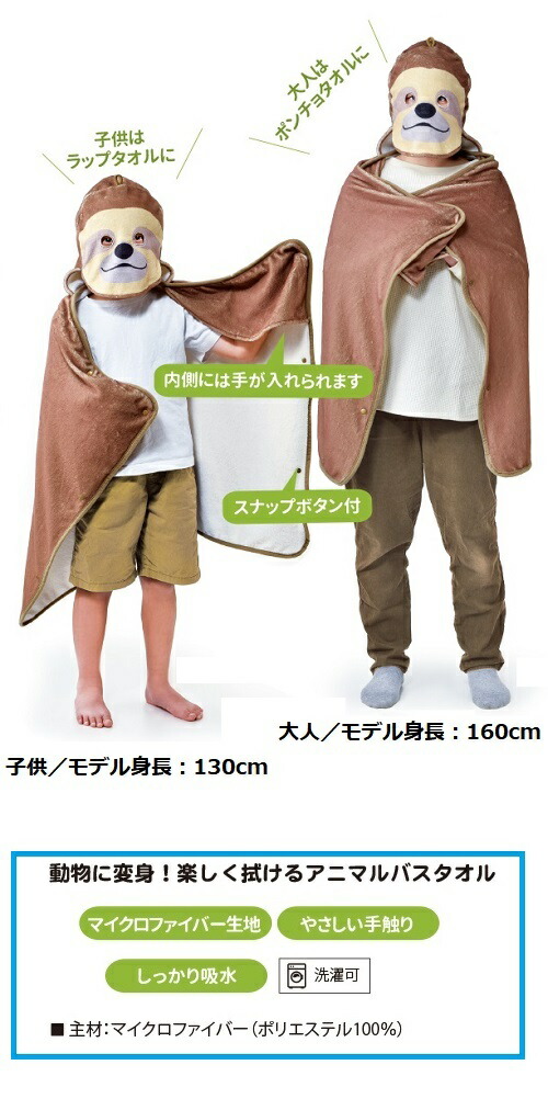 バスタオル(ナマケモノ、カワウソ、ハシビロコウ、パンダ)【正規メーカー品】