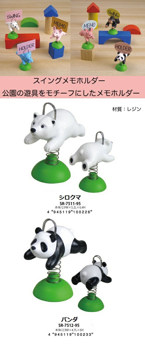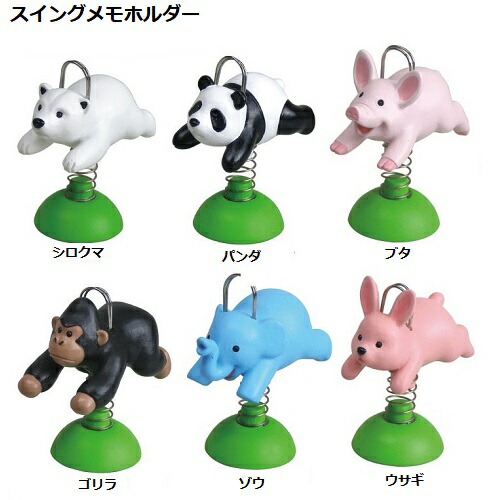 アニマル・スイングメモホルダー(シロクマ、パンダ、ブタ、ゴリラ、ゾウ、ウサギ)
