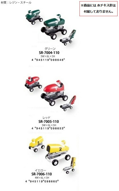 ホチキス トイ・カー ステープラー(グリーン、レッド、イエロー)【正規メーカー品】