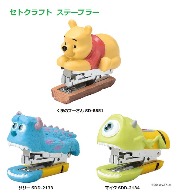 ステープラー (POOH くまのプーさん SD-8851、モンスターズ・インク サリー SDD-2133、マイク SDD-2134)セトクラフト