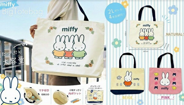 ミッフィー ビッグトートバッグ (ホワイト・ベージュ・ピンク)【公式ライセンス商品】miffy 買い物バック エコバック