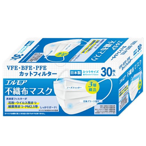 エルモア 不織布マスク ふつうサイズ 30枚入