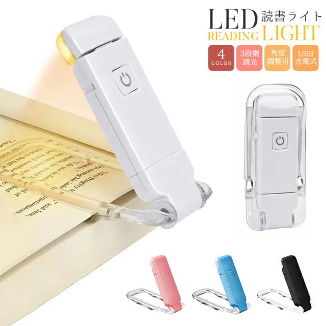 読書ライト 明るさ調整 角度調整 充電式 クリップライト ミニ 読書灯 USB充電式ブックライト led クリップライトブックライト クリップ バッテリー 本 照明 小型 3種類色温