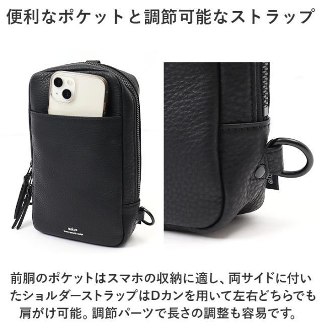waku ワク レザー ショルダーバッグ WK-0032 通販 ショルダーバック ショルダー 斜め掛けバッグ 斜め掛けバック 斜めかけ 肩掛け ボディバッグ ボディバック ワンショルダー 革 縦 コンパクト きれいめ ミニ 縦型