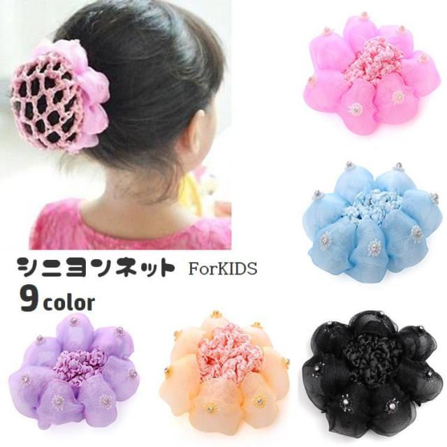 シニヨンネット シュシュ 子供用 キッズ 女の子 ヘアアクセサリー ヘアネット 髪飾り まとめ髪 ヘアアレンジ ラインストーン