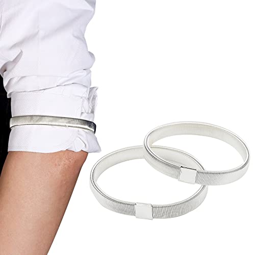 ZHEJIA アームバンド スプリング ループ式 アームベルト アームクリップ 金属製 袖丈 調整 入学式 おしゃれ 2個セット(シルバー)