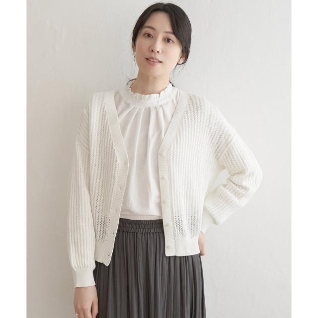 涼しげな透かし編みのニットカーディガン。