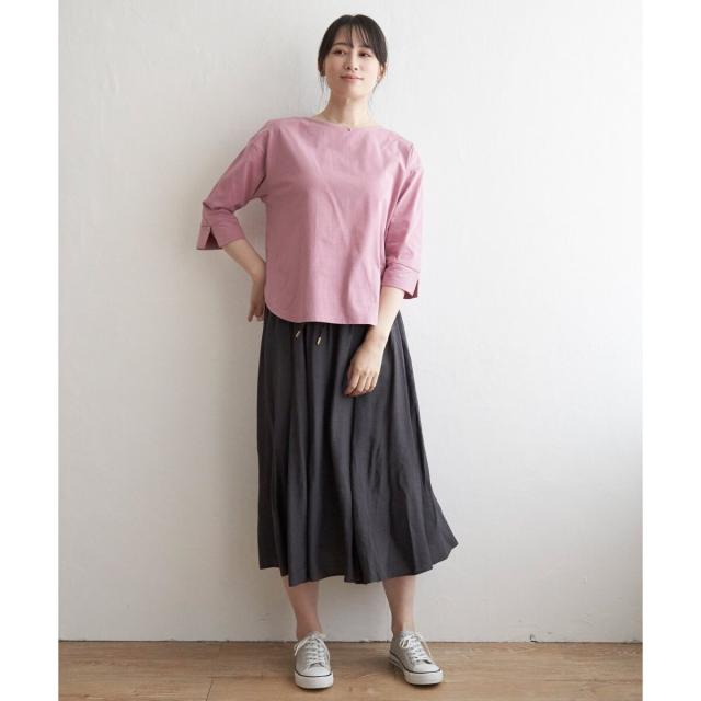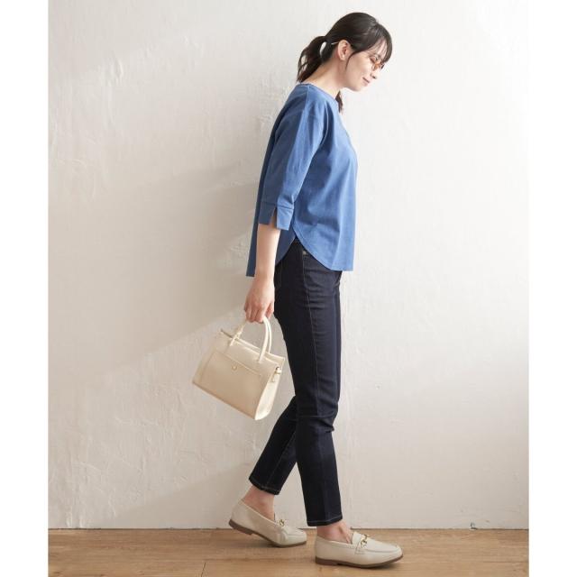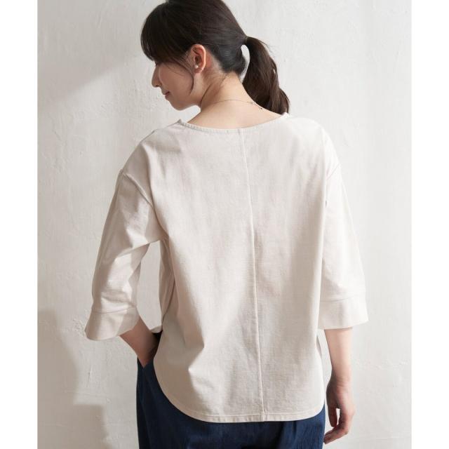ブラウス風にも見えて、上品ながら5分袖とボートネックが軽快な印象。