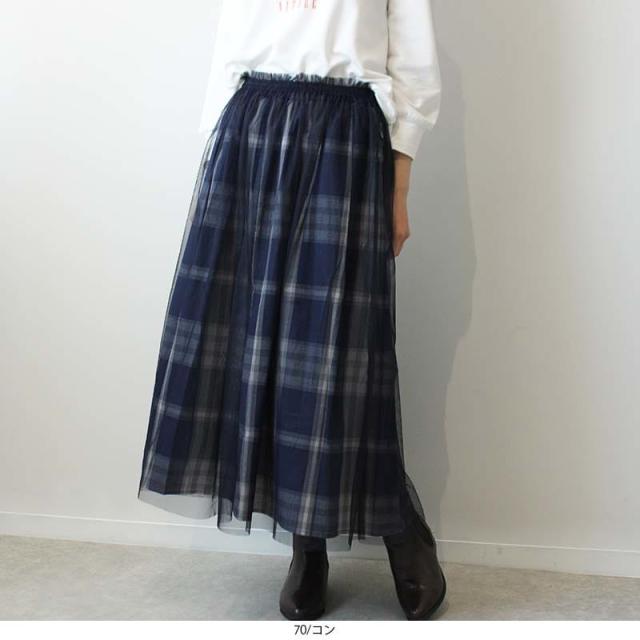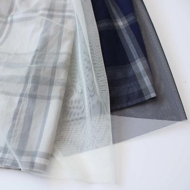 【大きいサイズ】チュール × チェック柄 ギャザースカート