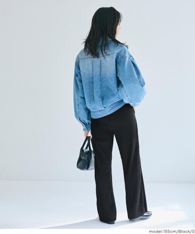 イージーな履き心地ながらも足長効果&細見えするリブパンツ。