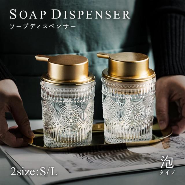 ソープディスペンサー ポンプボトル 詰め替え容器 ガラス ハンドソープ 泡 手動 かわいい おしゃれ 高級感 きれいめ 高見え