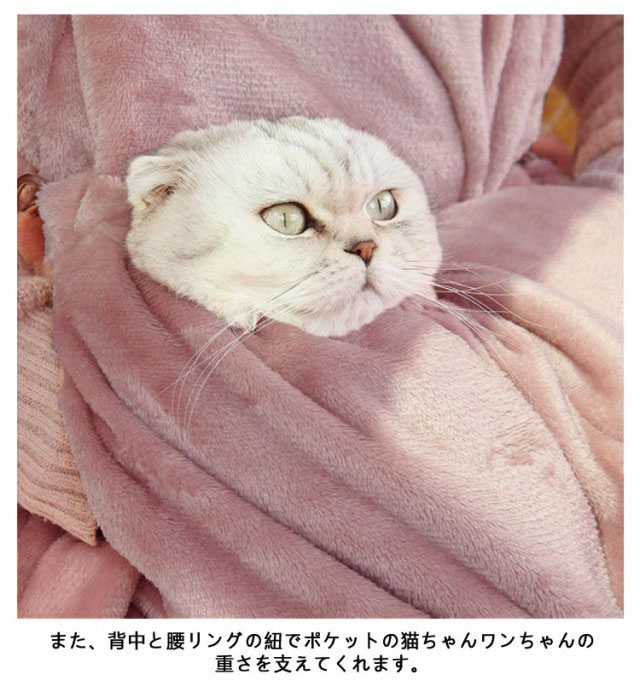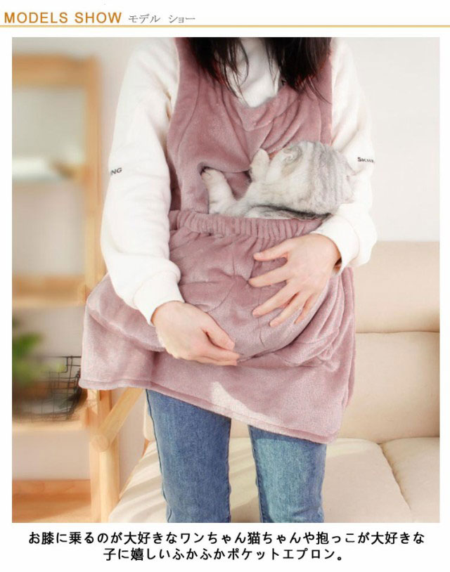| お膝に乗るのが大好きなワンちゃん猫ちゃんや抱っこが大好きな子に嬉しいふかふかポケットエプロン。ペットと幸せなひと時を過ごせるエプロンです。 まるで着る毛布のような、毛布をまとっているような温かさ。 猫ちゃんワンちゃんはもちろんのこと、オーナー様もぽかぽかで寒さ対策にもバッチリ活躍してくれます。 冬の厚着をしていても、その上からサッと着れて、腰のリングでフィット調節するだけ!着脱も簡単です。 また、背中と腰リングの紐でポケットの猫ちゃんワンちゃんの重さを支えてくれます。 そして、猫ちゃんワンちゃんが入るポケットには、オーナー様用ポケットとなでなでができるポケットも付いています。 この至れり尽くせりのエプロン、冬のアイテムとして是非おすすめいたします! | |