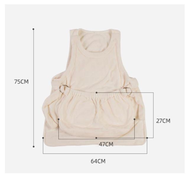 | サイズについての説明 | サイズ:着丈約75cm 幅約64cm ポケット:27×47(高さ×幅) おすすめ体重7.5kgまで ※サイズ計測には誤差が生じます。 |