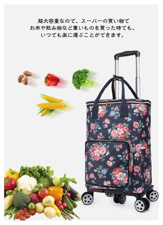 | 取り外し可能のショッピングカートです。 バッグの内側に保冷保温効果のあるアルミホイルを使用しており、生鮮食品などの買い物に便利にお使いいただけます。 バッグを取り外して、キャリーを簡単に折り畳んでバッグを入ることができます。使用していない時はコンパクトに折り畳めるので、リビングに置いても場所を取りません。 超大容量なので、スーパーの買い物でお米や飲み物など重いものを買った時でも、いつでも楽に運ぶことができます。 一台両用で、米や飲料などの重いものを手軽に運搬できます。 耐久性・安定性に優れた5個タイヤを採用します。360度回転するので、スムーズに方向を変えやすいです。静音設計により、走行時の音が気になりにくいのはメリットです。 乗せる荷物の大きさや使う人の身長に応じて、ハンドルのボタンを押すことで高さが3段階調整できます。 個人的と家庭な利用だけではなく、両親、友達、主婦、事務員へのプレゼント用におすすめ! 日常生活(水購入時、ゴミだし、灯油、駐車上から家までの運搬など)、 釣り、引っ越し、旅行、運動会、バーべーキュー、キャンプなどのアウトドアシーンでも大活躍間違いなし! | |