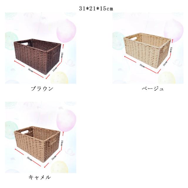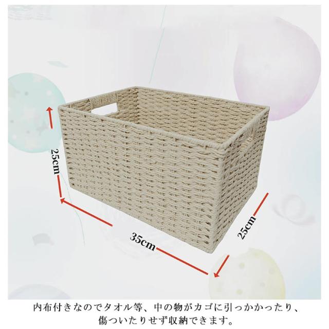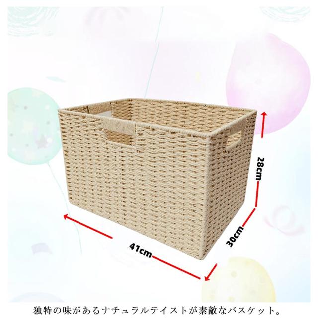| 精巧な取っ手付きで、簡単に持ち運ぶことができます。 インテリア収納として、おもちゃ箱として、工夫次第でいろんな使い方ができます。 独特の味があるナチュラルテイストが素敵なバスケット。 日常のインテリア収納をオシャレにかわいく。 内布付きなのでタオル等、中の物がカゴに引っかかったり、傷ついたりせず収納できます。 | |