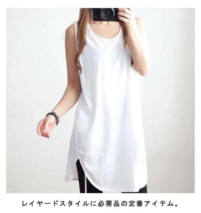 レイヤード タンクトップ インナー レディース ノースリーブ カットソー トップス プルオーバー 綿 重ね着 ラウンドヘム 体型カバー 無地 大きいサイズ 大人 可愛い ナチュラル 服 カジュアル