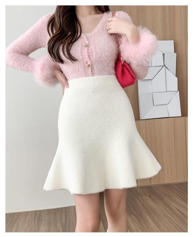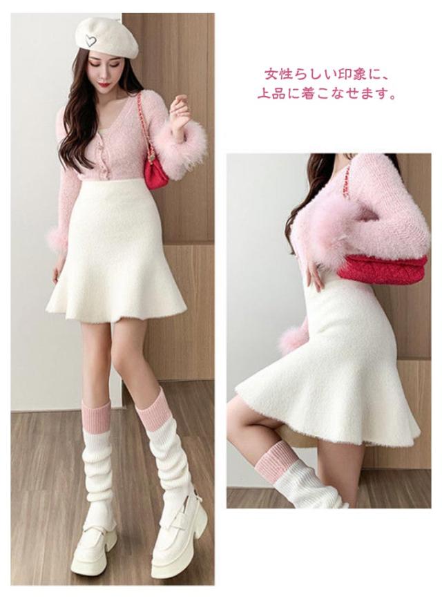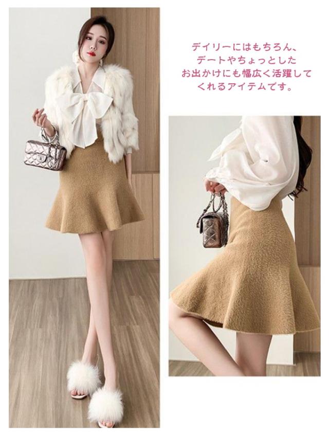 シャギーニット スカート 秋冬 ミニスカート もこもこ マーメイドラインスカート ニットスカート Aライン タイト ミニ丈 スカート ふわふわ 暖かい 大人 おしゃれ 可愛い S M L XL 2XL 3XL
