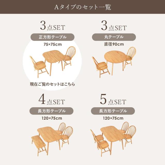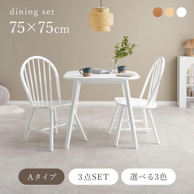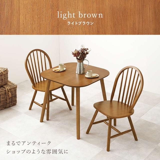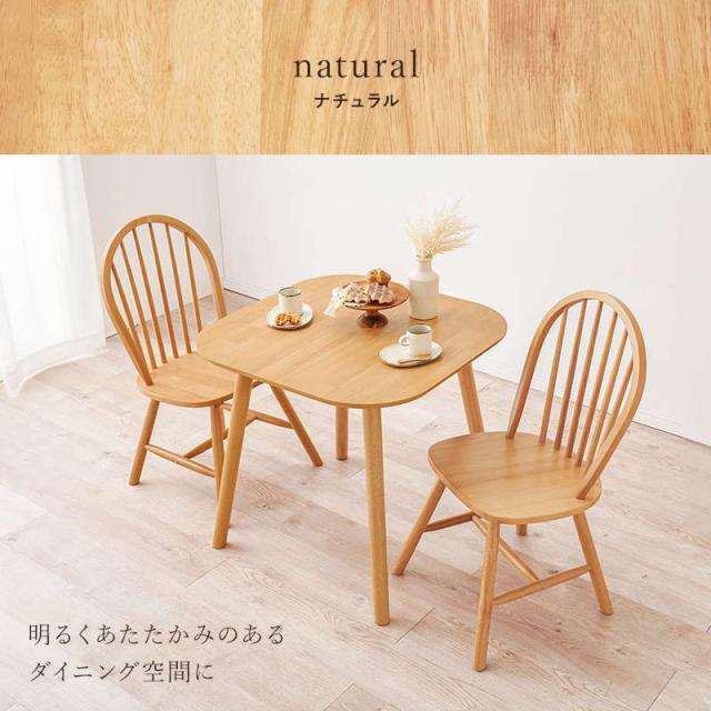 ダイニングテーブルセット ウィンザーチェア2脚 3点セット 1人〜2人用 木製 天然木 天板75x75cm チェア形状 ボウバックタイプ