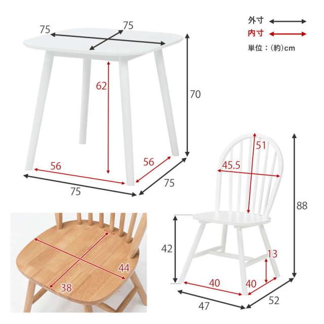 チェア:(約)チェア:(約)幅47×奥行52×高さ88×座面高42cm
