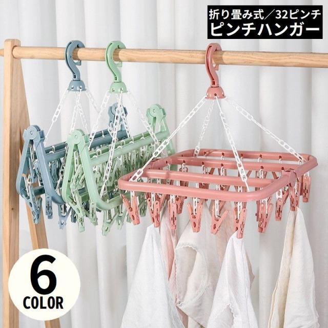 ピンチハンガー 32ピンチ 折りたたみ 折り畳み 省スペース 洗濯ハンガー 物干し 360度回転可 滑り止め 多機能 靴下 下着