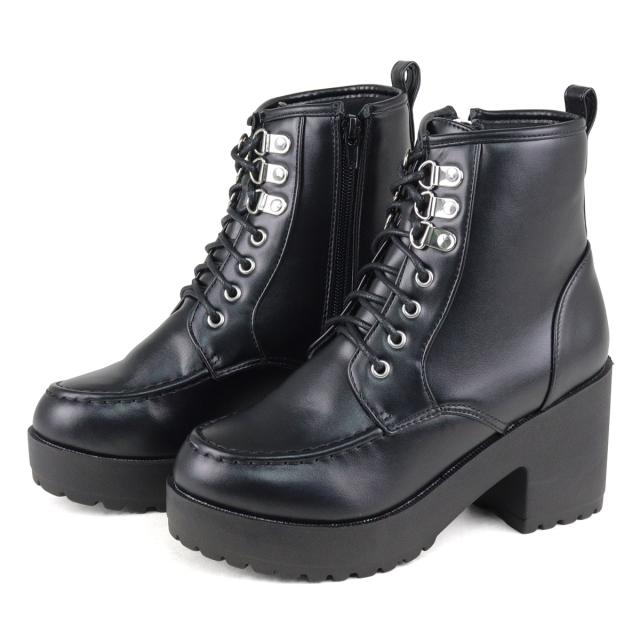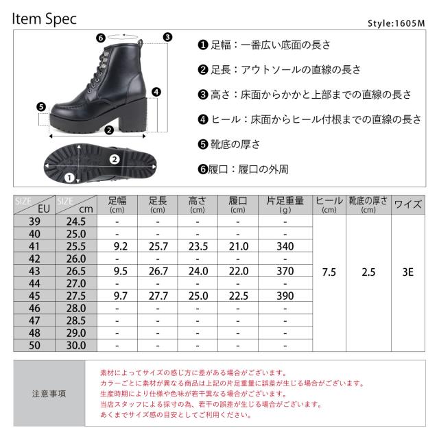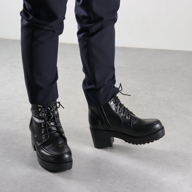 レースアップブーツ メンズ ショート 厚底 7.5cmヒール サイドジップ 歩きやすい 合成皮革 No.1605M 25.5〜27.5cm 黒 ラブハンター