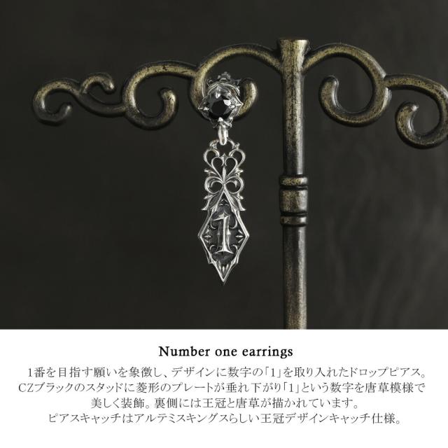 アルテミスキングス ナンバーワン ピアス 1P 片耳用 シルバー925 シルバーアクセサリー シルバーピアス 揺れる 数字 No.1 ナンバー 1 王冠 ゴシック