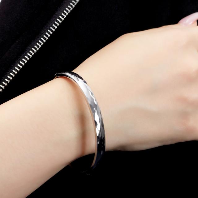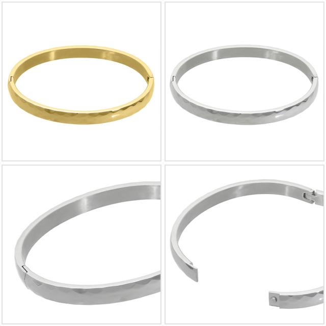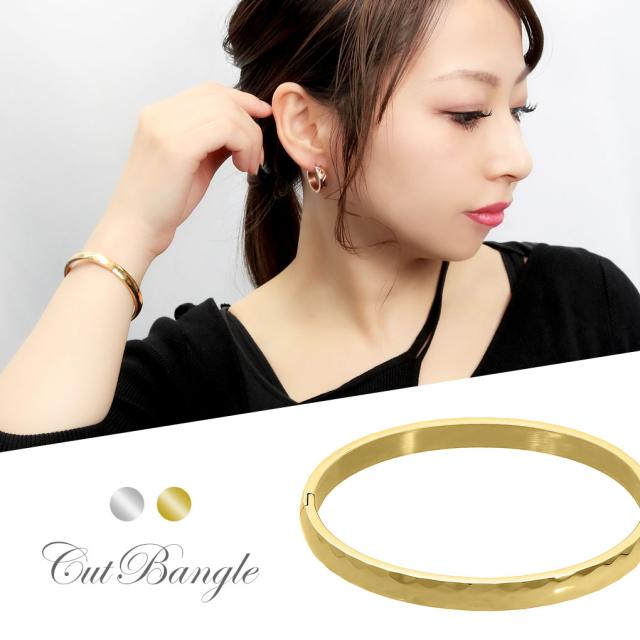 シンプル 槌目模様 ステンレス バングル ブレスレット 17.5cm ゴールド 模様 パターン ラフ 槌目 レディース 女性 彼女 メンズ 男性 彼氏