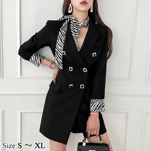 ゼブラ柄アクセントのダブルテーラードジャケットワンピース(キャバドレス・CABARETDRESS)。
